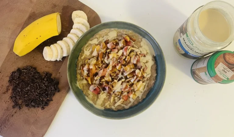 Das fertige Porridge mit dem Bratapfel toppen und servieren.